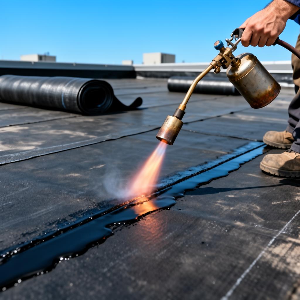 Torch-applied modified bitumen membrane — a typical use case for a modified bitumen roof calculator.